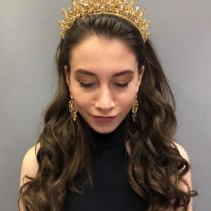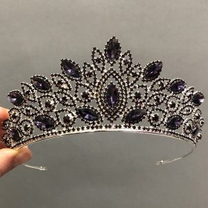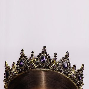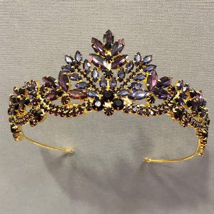 Toptan Mürdüm Kristal Taşlı Altın Rengi Metal Kasalı Kına ve Gelin Tacı