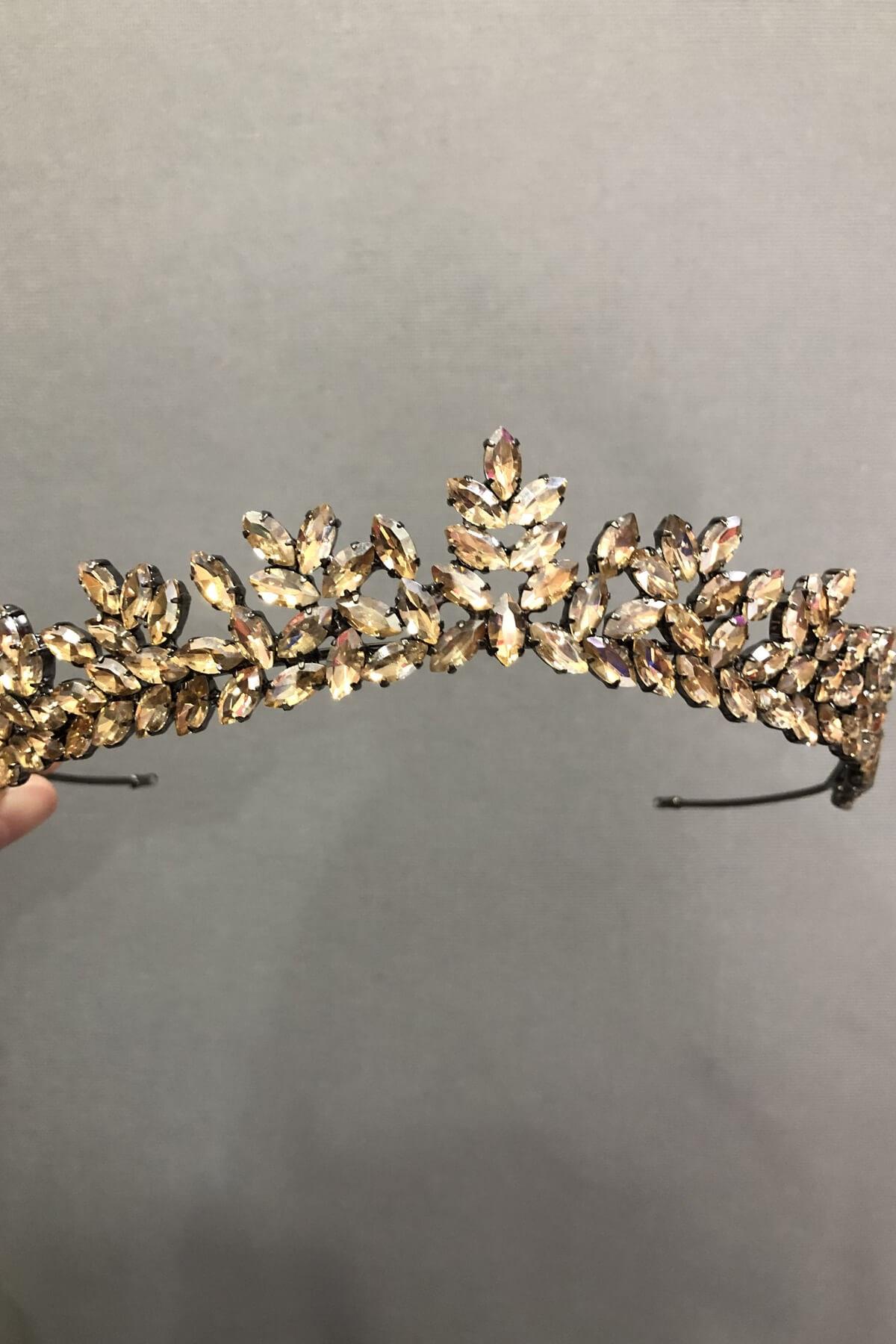 Bal Rengi Taşlı Gold Zemin Kına Tacı