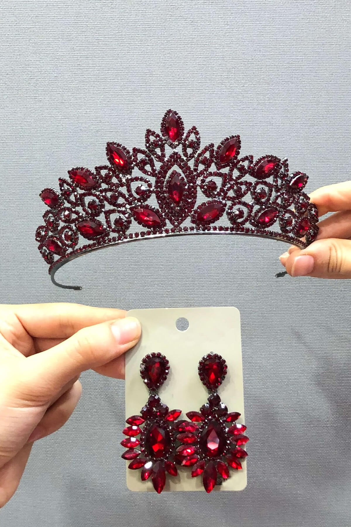 Toptan Bordo Kına Gelin Tacı ve Küpe Seti