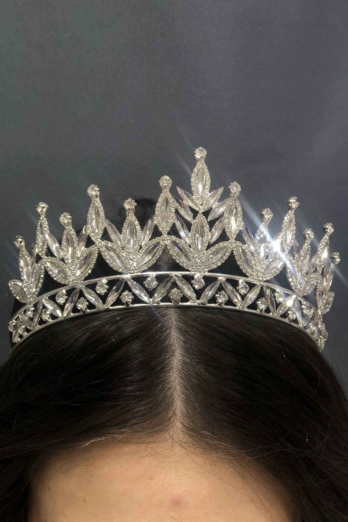 Kristal Taşlı Gümüş Renkli Gelin Tacı