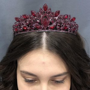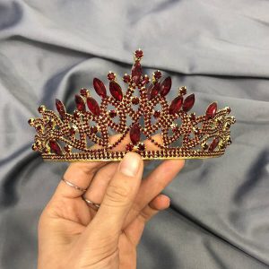 Kırmızı Kristal Taşlı Kına Gelin Tacı