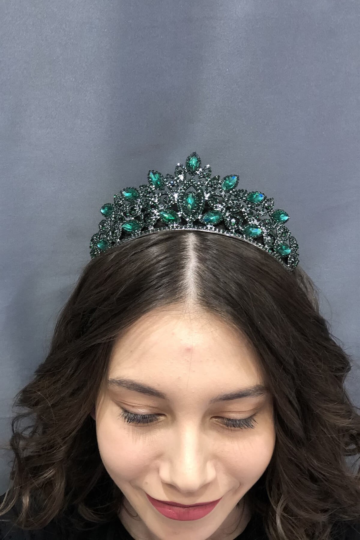 Toptan Kristal Taşlı Yeşil Gelin Tacı