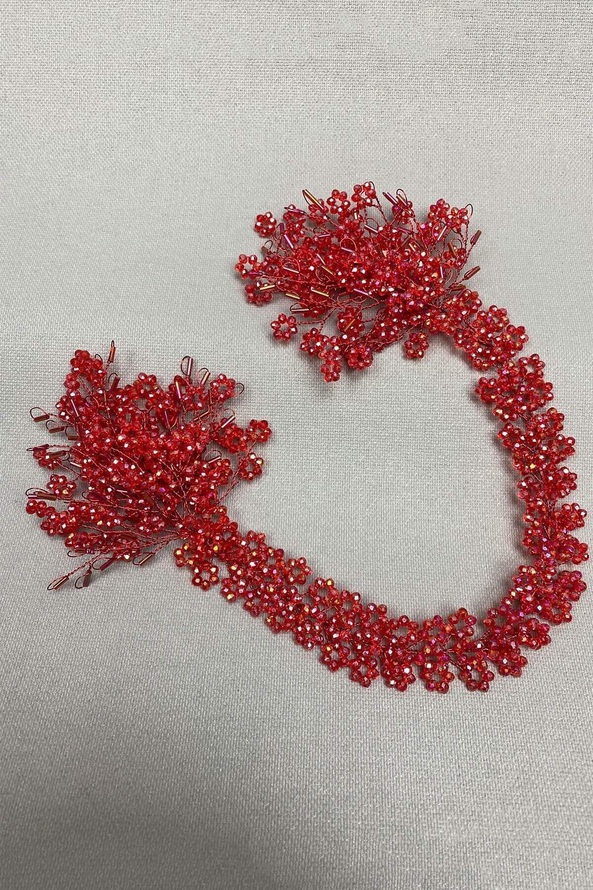 Kırmızı Helen Kristalli Gelin Kına Tacı Gelinlerin Kınalarda Bindalı ve Kına Kıyafetlerinin üzerine Aksesuar Olarak En çok Tercih Ettigi Renkli Tamamen El işçiliği ile Yapılan Kına Tacı Modelin çok Göz Alıcı ve Zarif Bir Aksesuar isteyen Gelinlerin Tercihi Olabilecek Gelin Kına Tacı ve Dilerseniz Türban Akseuarı Olarakta Kullanılabilecek Bir Modelimiz.
