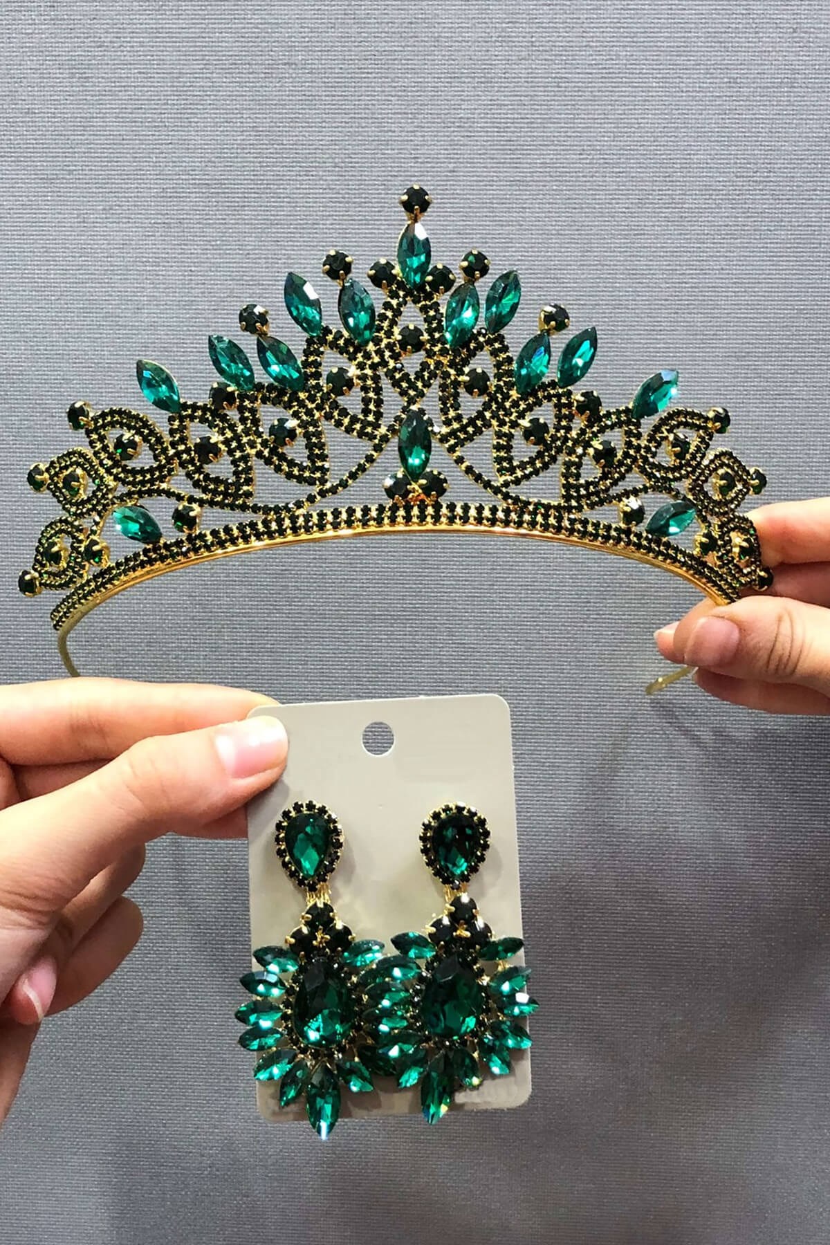 Toptan Yeşil Kına Gelin Tacı ve Küpe Seti
