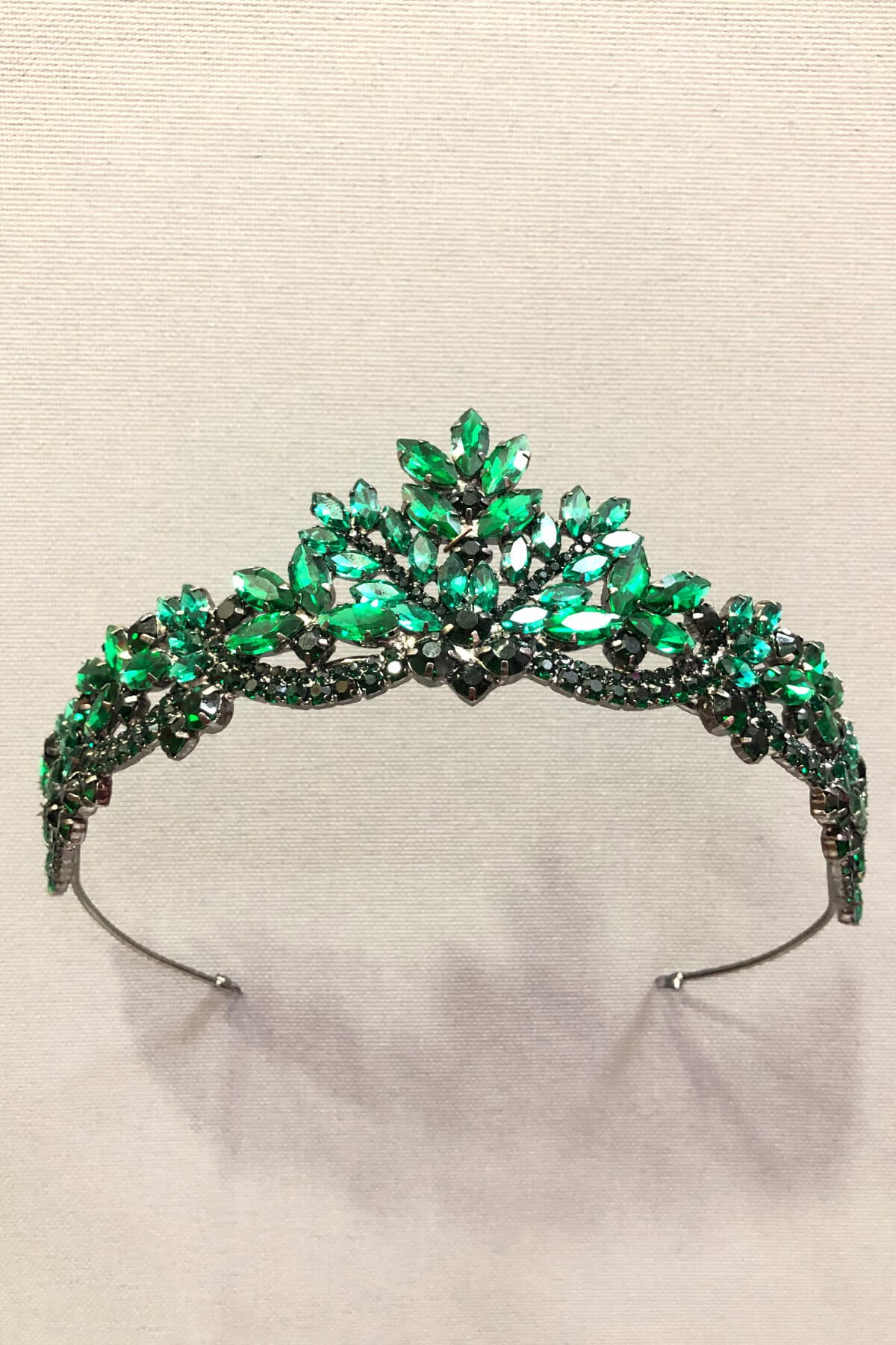 Toptan Yeşil Kristal Taşlı Metal Kasalı Kına ve Gelin Tacı